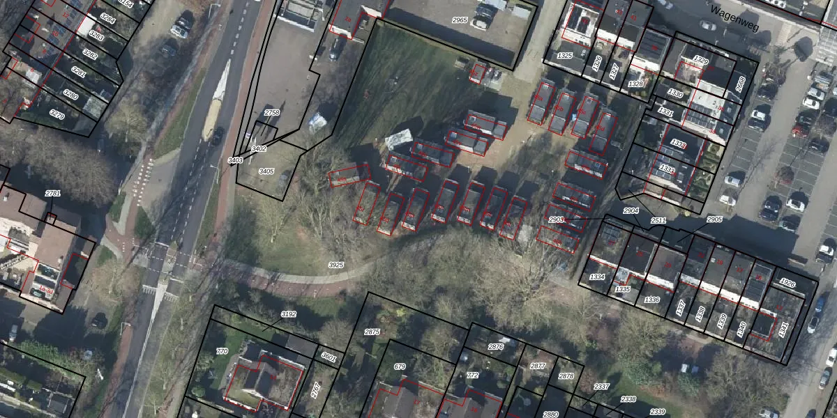 Het perceel waarop Wagenweg 45-p staat heeft een oppervlakte van 18,8 ha. Dit is een zeer groot perceel. De perceeloppervlakte wordt geregistreerd door het Kadaster. Gedetailleerde informatie over de maten van dit perceel kunt u vinden in het rapport Kadastrale kaart met maatvoering van Wagenweg 45-p.