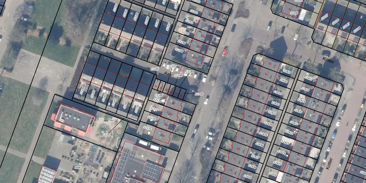 Het perceel waarop Aak 24 staat heeft een oppervlakte van 18 m². Dit is een klein perceel. De perceeloppervlakte wordt geregistreerd door het Kadaster. Gedetailleerde informatie over de maten van dit perceel kunt u vinden in het rapport Kadastrale kaart met maatvoering van Aak 24.