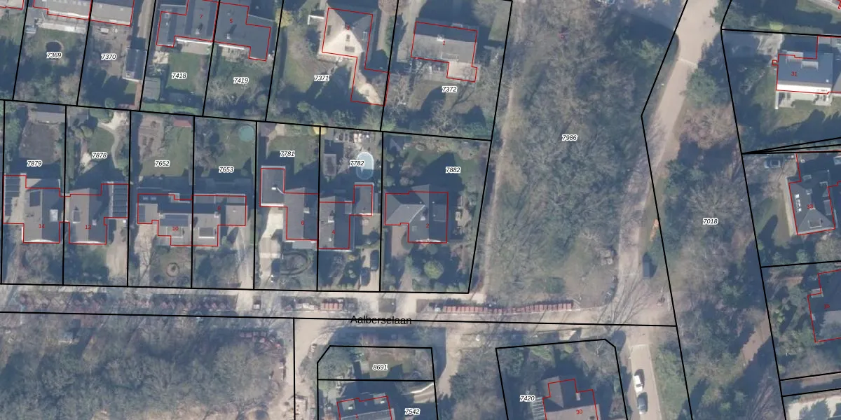 Het perceel waarop Aalberselaan 2 staat heeft een oppervlakte van 885 m². Dit is een groot perceel. De perceeloppervlakte wordt geregistreerd door het Kadaster. Gedetailleerde informatie over de maten van dit perceel kunt u vinden in het rapport Kadastrale kaart met maatvoering van Aalberselaan 2.