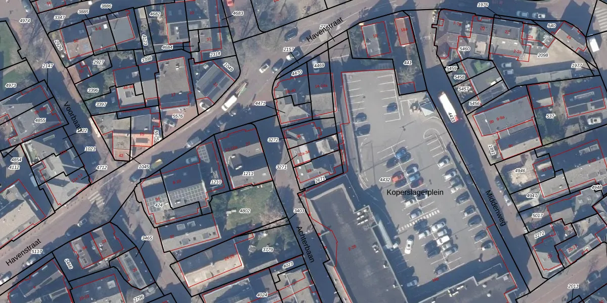 Het adres ligt op het perceel HZN00-D-3271, dat zich in de kadastrale gemeente Huizen bevindt. De gemiddelde perceelgrootte in Huizen is 1437,64 m². Dit perceel is kleiner: de perceeloppervlakte bedraagt 97 m². De grootste perceeloppervlakte in de kadastrale gemeente is 4,26 km². De kleinste oppervlakte bedraagt 0 m². Op het perceel zijn 2 adressen aanwezig. De laatste wijziging in het de Basisregistratie Kadaster (BRK) was op 09-11-2006.