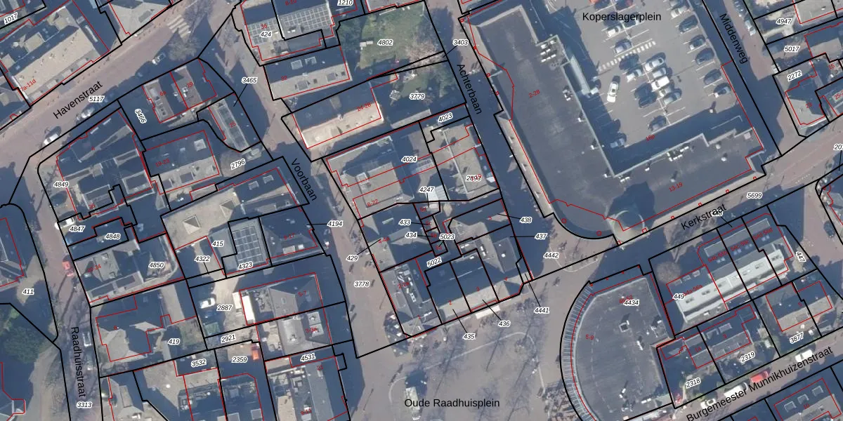 Gebruik de zoekbalk of klik op een perceel voor informatie over de adressen binnen dit perceel.