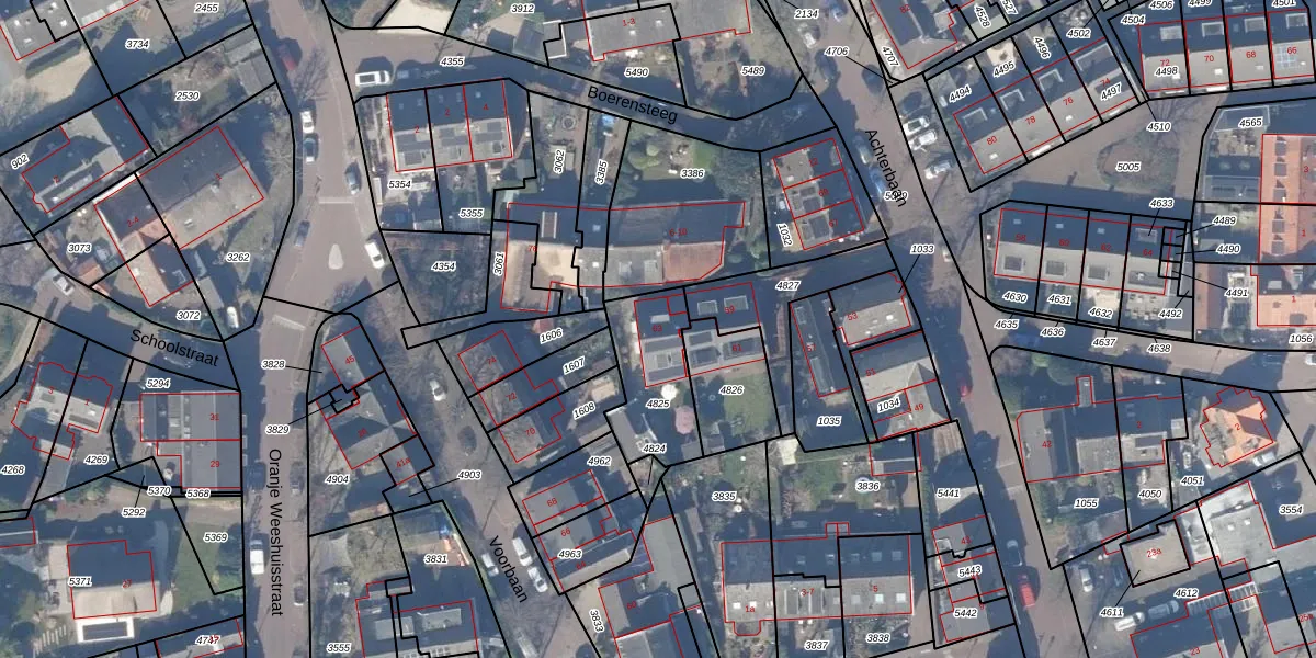 Gebruik de zoekbalk of klik op een perceel voor informatie over de adressen binnen dit perceel.
