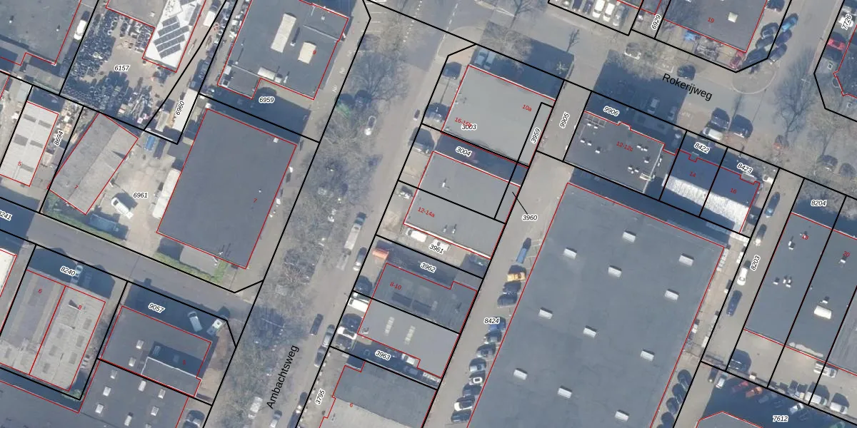 Ambachtsweg 12 is gelegen op kadastraal perceel HZN00D3961. Deze kadastrale aanduiding is uniek en wordt gebruikt door het Kadaster om eigendomsrechten en andere zakelijke rechten vast te leggen. Het perceel maakt onderdeel uit van de kadastrale gemeente Huizen.