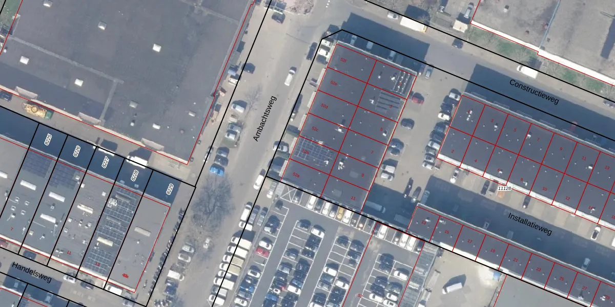 Het perceel waarop Ambachtsweg 52-b staat heeft een oppervlakte van 7636 m². Dit is een zeer groot perceel. De perceeloppervlakte wordt geregistreerd door het Kadaster. Gedetailleerde informatie over de maten van dit perceel kunt u vinden in het rapport Kadastrale kaart met maatvoering van Ambachtsweg 52-b.