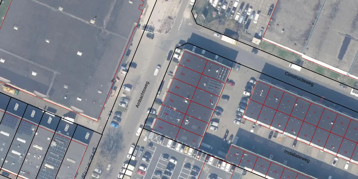 Het perceel waarop Ambachtsweg 52-d staat heeft een oppervlakte van 7636 m². Dit is een zeer groot perceel. De perceeloppervlakte wordt geregistreerd door het Kadaster. Gedetailleerde informatie over de maten van dit perceel kunt u vinden in het rapport Kadastrale kaart met maatvoering van Ambachtsweg 52-d.