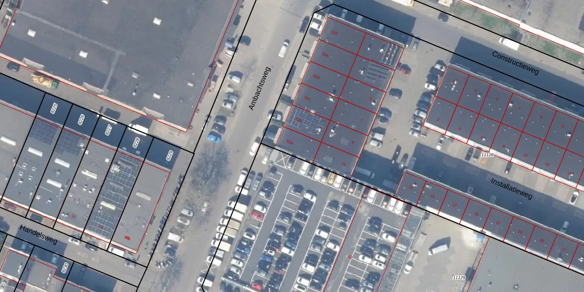 Het perceel waarop Ambachtsweg 52-a staat heeft een oppervlakte van 7636 m². Dit is een zeer groot perceel. De perceeloppervlakte wordt geregistreerd door het Kadaster. Gedetailleerde informatie over de maten van dit perceel kunt u vinden in het rapport Kadastrale kaart met maatvoering van Ambachtsweg 52-a.