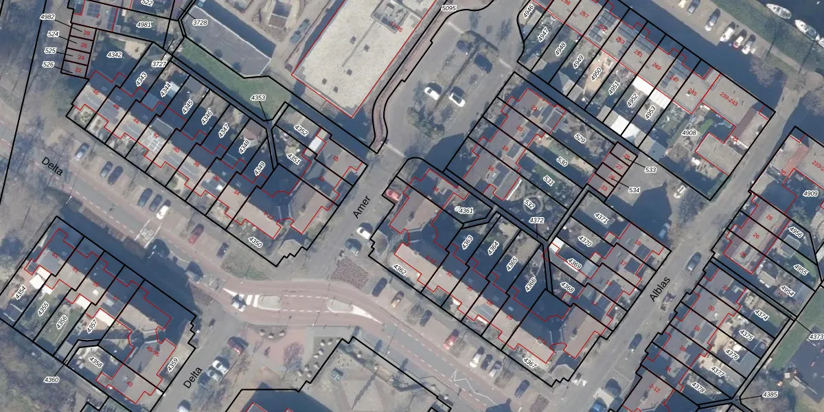 Het perceel waarop Amer 4 staat heeft een oppervlakte van 354 m². Dit is een groot perceel. De perceeloppervlakte wordt geregistreerd door het Kadaster. Gedetailleerde informatie over de maten van dit perceel kunt u vinden in het rapport Kadastrale kaart met maatvoering van Amer 4.