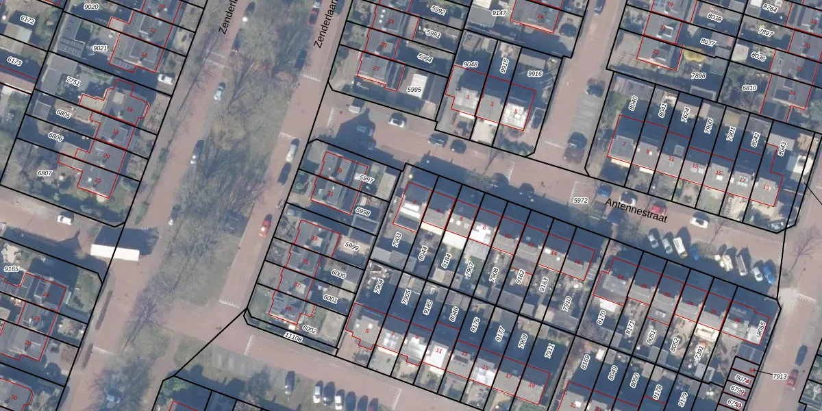 Antennestraat 2 is gelegen op kadastraal perceel HZN00C7903. Deze kadastrale aanduiding is uniek en wordt gebruikt door het Kadaster om eigendomsrechten en andere zakelijke rechten vast te leggen. Het perceel maakt onderdeel uit van de kadastrale gemeente Huizen.