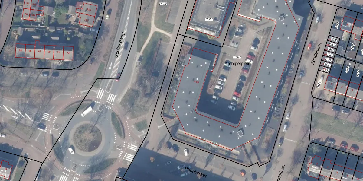 Het perceel waarop Archipelplein 39 staat heeft een oppervlakte van 5364 m². Dit is een zeer groot perceel. De perceeloppervlakte wordt geregistreerd door het Kadaster. Gedetailleerde informatie over de maten van dit perceel kunt u vinden in het rapport Kadastrale kaart met maatvoering van Archipelplein 39.
