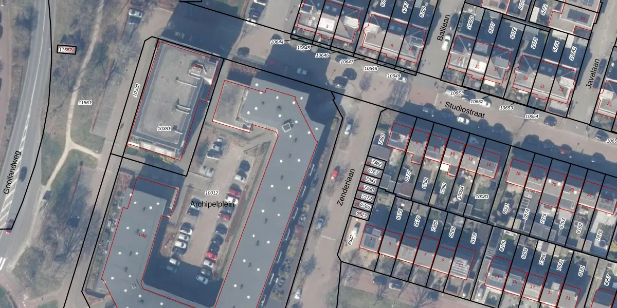 Het perceel waarop Archipelplein 54 staat heeft een oppervlakte van 5364 m². Dit is een zeer groot perceel. De perceeloppervlakte wordt geregistreerd door het Kadaster. Gedetailleerde informatie over de maten van dit perceel kunt u vinden in het rapport Kadastrale kaart met maatvoering van Archipelplein 54.
