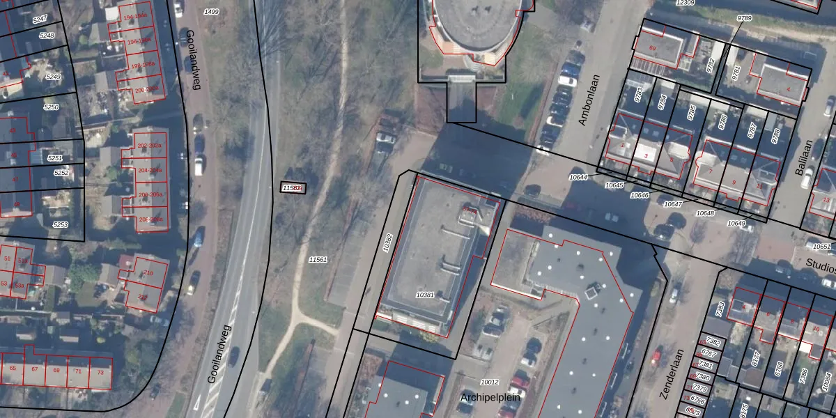 Archipelplein 59 is gelegen op kadastraal perceel HZN00C10381. Deze kadastrale aanduiding is uniek en wordt gebruikt door het Kadaster om eigendomsrechten en andere zakelijke rechten vast te leggen. Het perceel maakt onderdeel uit van de kadastrale gemeente Huizen.