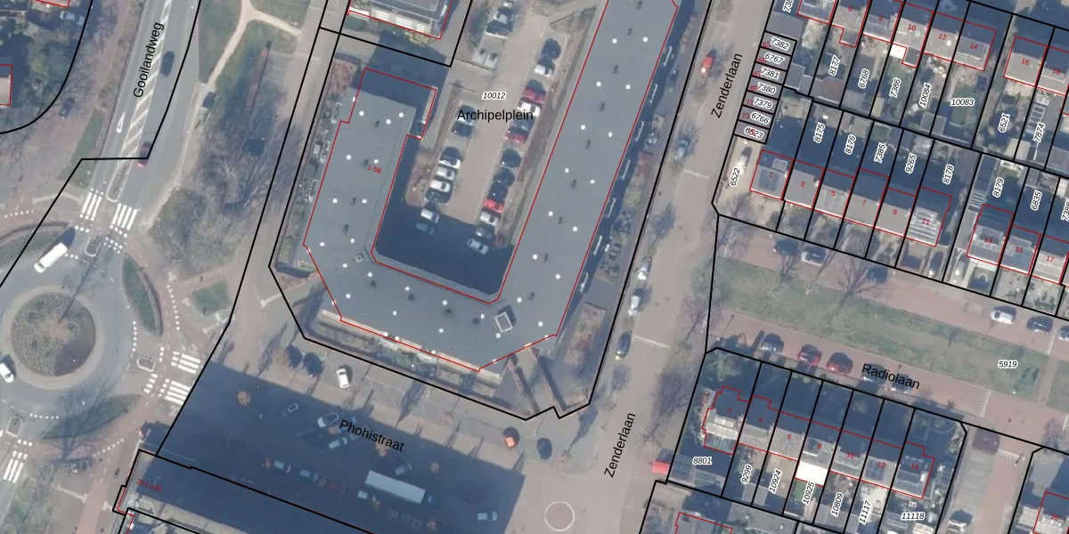 Archipelplein 9 is gelegen op kadastraal perceel HZN00C10012. Deze kadastrale aanduiding is uniek en wordt gebruikt door het Kadaster om eigendomsrechten en andere zakelijke rechten vast te leggen. Het perceel maakt onderdeel uit van de kadastrale gemeente Huizen.