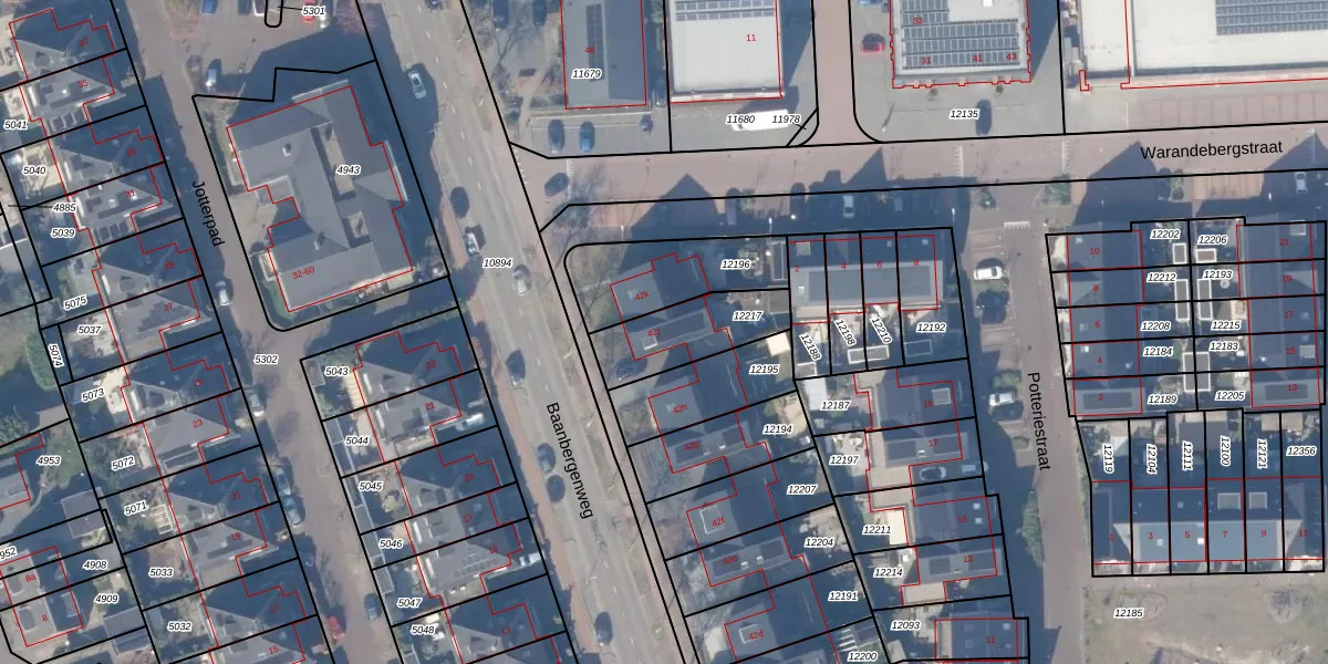 Het perceel waarop Baanbergenweg 42-j staat heeft een oppervlakte van 256 m². Dit is een middelgroot perceel. De perceeloppervlakte wordt geregistreerd door het Kadaster. Gedetailleerde informatie over de maten van dit perceel kunt u vinden in het rapport Kadastrale kaart met maatvoering van Baanbergenweg 42-j.