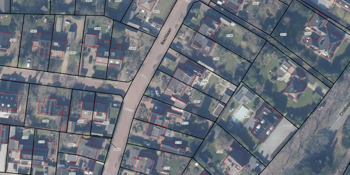 Het perceel waarop Bachlaan 17 staat heeft een oppervlakte van 605 m². Dit is een groot perceel. De perceeloppervlakte wordt geregistreerd door het Kadaster. Gedetailleerde informatie over de maten van dit perceel kunt u vinden in het rapport Kadastrale kaart met maatvoering van Bachlaan 17.