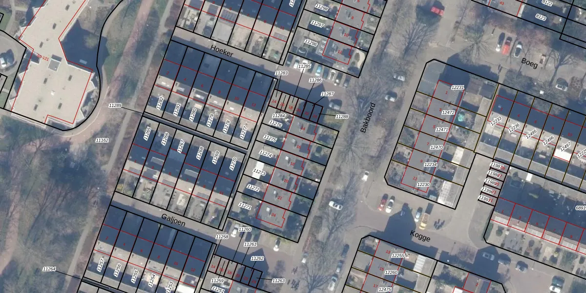 Bakboord 16 is gelegen op kadastraal perceel HZN00C11275. Deze kadastrale aanduiding is uniek en wordt gebruikt door het Kadaster om eigendomsrechten en andere zakelijke rechten vast te leggen. Het perceel maakt onderdeel uit van de kadastrale gemeente Huizen.