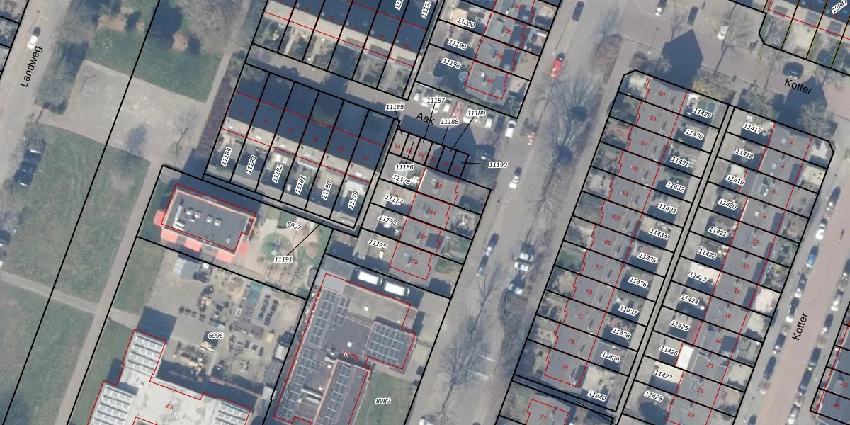 Het adres ligt op het perceel HZN00-C-11177, dat zich in de kadastrale gemeente Huizen bevindt. Het perceel is 159 m² groot. Dat is kleiner dan de gemiddelde perceeloppervlakte in Huizen, dat op 1437,02 m² ligt. De grootste perceeloppervlakte in de kadastrale gemeente is 4,26 km². De kleinste oppervlakte bedraagt 0 m². Er zijn geen andere adressen aanwezig op het perceel. De huidige grenzen van het perceel zijn digitaal in de Basisregistratie Kadaster (BRK) geregistreerd op 05-10-2009.