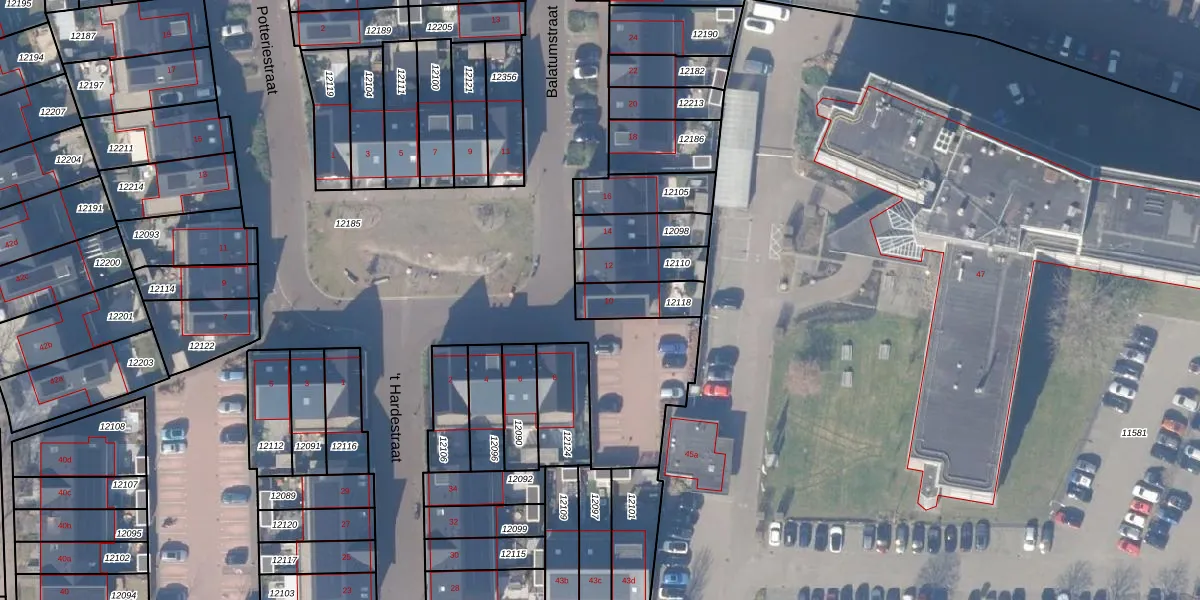Balatumstraat 10 is gelegen op kadastraal perceel HZN00C12118. Deze kadastrale aanduiding is uniek en wordt gebruikt door het Kadaster om eigendomsrechten en andere zakelijke rechten vast te leggen. Het perceel maakt onderdeel uit van de kadastrale gemeente Huizen.