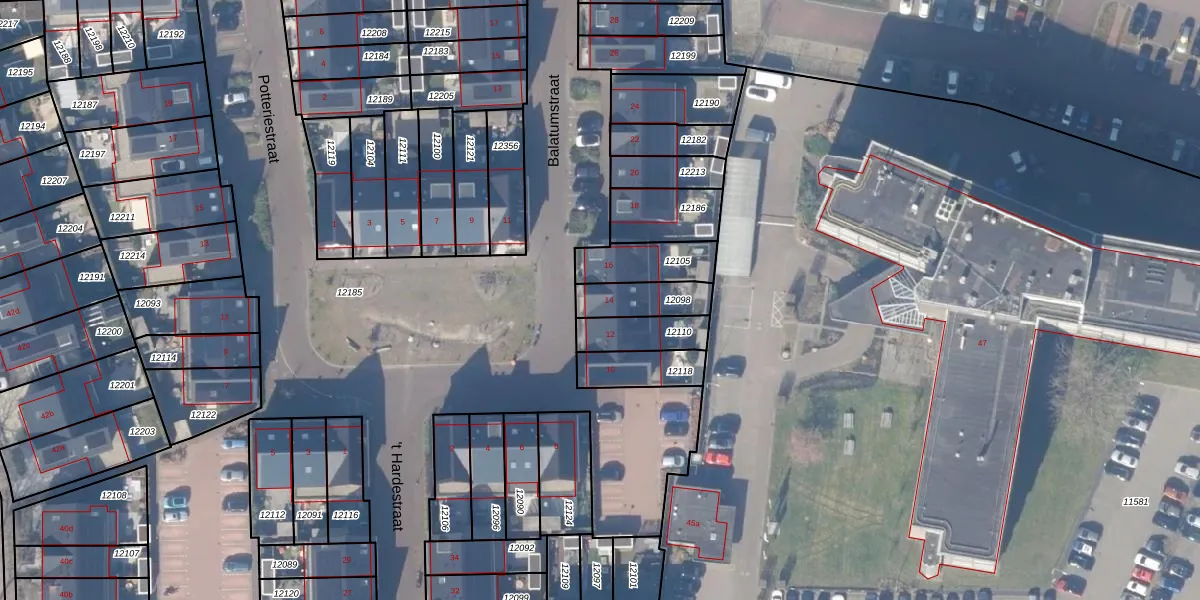 Balatumstraat 14 is gelegen op kadastraal perceel HZN00C12098. Deze kadastrale aanduiding is uniek en wordt gebruikt door het Kadaster om eigendomsrechten en andere zakelijke rechten vast te leggen. Het perceel maakt onderdeel uit van de kadastrale gemeente Huizen.