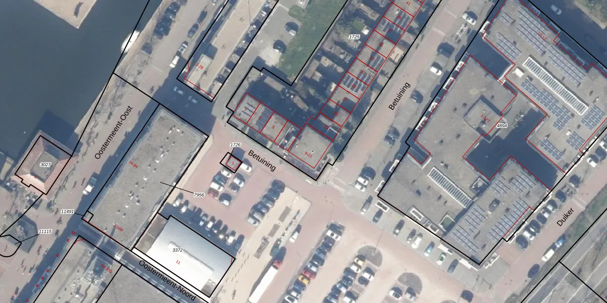Het adres ligt op het perceel HZN00-E-1725, dat zich in de kadastrale gemeente Huizen bevindt. De oppervlakte van het perceel is 2939 m². Dat is groter dan gemiddeld in Huizen, waar de gemiddelde perceeloppervlakte op 1437,02 m² ligt. De grootste perceeloppervlakte in de kadastrale gemeente is 4,26 km². De kleinste oppervlakte bedraagt 0 m². Er zijn 34 adressen aanwezig op het perceel. In de Basisregistratie Kadaster (BRK) werden de grenzen van het perceel geregistreerd op 30-06-2010.