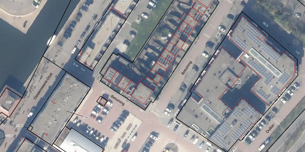 Het perceel waarop Betuining 25 staat heeft een oppervlakte van 2939 m². Dit is een zeer groot perceel. De perceeloppervlakte wordt geregistreerd door het Kadaster. Gedetailleerde informatie over de maten van dit perceel kunt u vinden in het rapport Kadastrale kaart met maatvoering van Betuining 25.