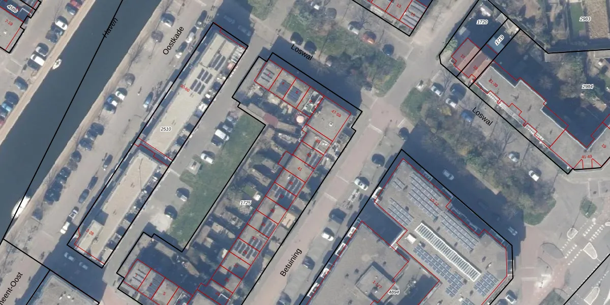 Betuining 43 is gelegen op kadastraal perceel HZN00E1725. Deze kadastrale aanduiding is uniek en wordt gebruikt door het Kadaster om eigendomsrechten en andere zakelijke rechten vast te leggen. Het perceel maakt onderdeel uit van de kadastrale gemeente Huizen.