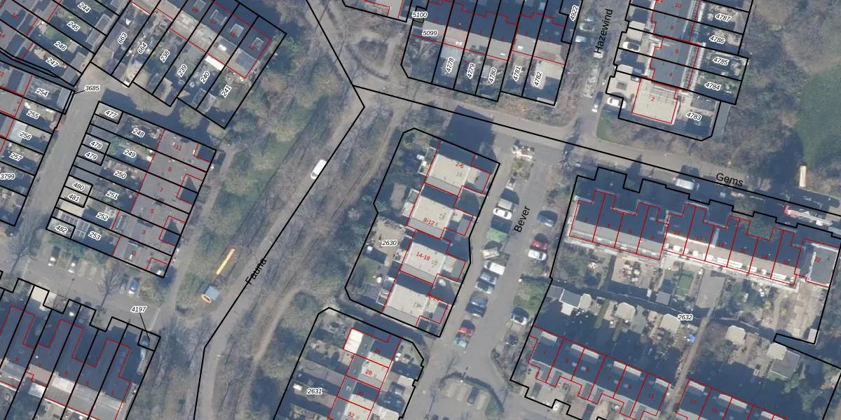 Het perceel waarop Bever 12 staat heeft een oppervlakte van 1075 m². Dit is een zeer groot perceel. De perceeloppervlakte wordt geregistreerd door het Kadaster. Gedetailleerde informatie over de maten van dit perceel kunt u vinden in het rapport Kadastrale kaart met maatvoering van Bever 12.