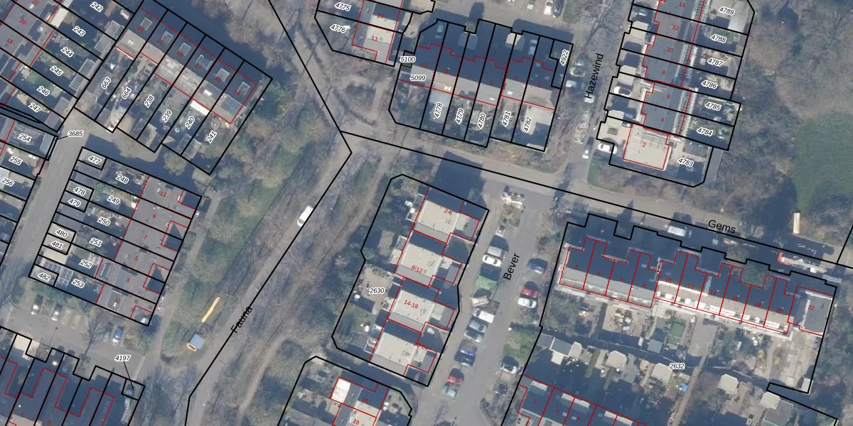 Het perceel waarop Bever 2 staat heeft een oppervlakte van 1075 m². Dit is een zeer groot perceel. De perceeloppervlakte wordt geregistreerd door het Kadaster. Gedetailleerde informatie over de maten van dit perceel kunt u vinden in het rapport Kadastrale kaart met maatvoering van Bever 2.