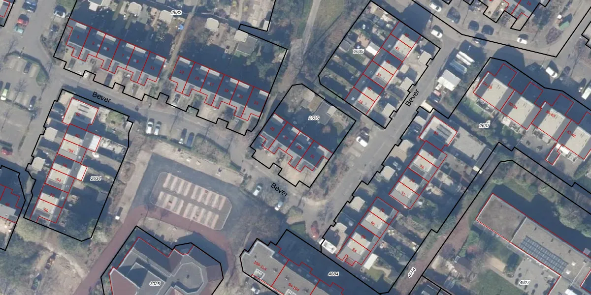 Het perceel waarop Bever 29 staat heeft een oppervlakte van 705 m². Dit is een groot perceel. De perceeloppervlakte wordt geregistreerd door het Kadaster. Gedetailleerde informatie over de maten van dit perceel kunt u vinden in het rapport Kadastrale kaart met maatvoering van Bever 29.