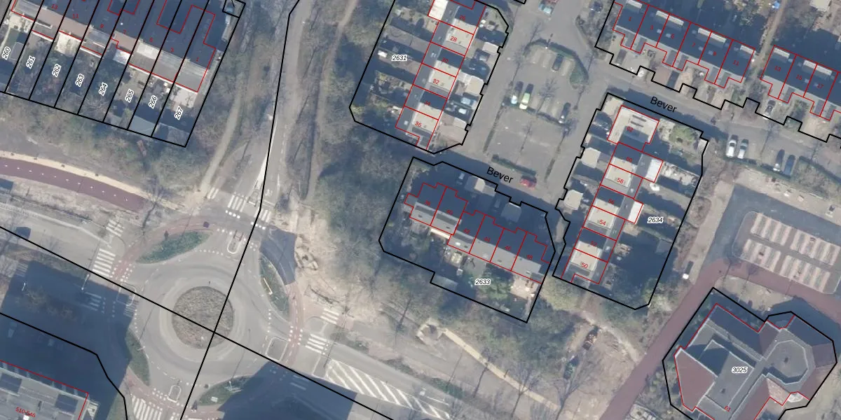 Het perceel waarop Bever 38 staat heeft een oppervlakte van 980 m². Dit is een groot perceel. De perceeloppervlakte wordt geregistreerd door het Kadaster. Gedetailleerde informatie over de maten van dit perceel kunt u vinden in het rapport Kadastrale kaart met maatvoering van Bever 38.