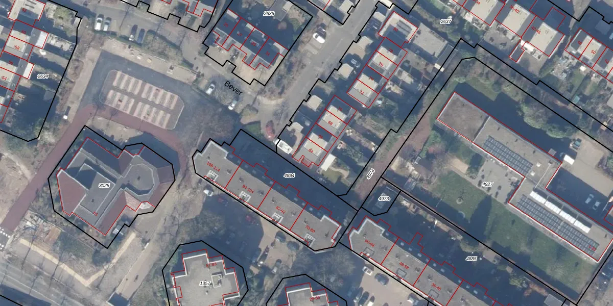 Het perceel waarop Bever 64 staat heeft een oppervlakte van 4590 m². Dit is een zeer groot perceel. De perceeloppervlakte wordt geregistreerd door het Kadaster. Gedetailleerde informatie over de maten van dit perceel kunt u vinden in het rapport Kadastrale kaart met maatvoering van Bever 64.