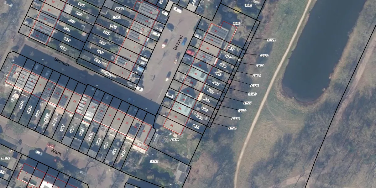 Gebruik de zoekbalk of klik op een perceel voor informatie over de adressen binnen dit perceel.