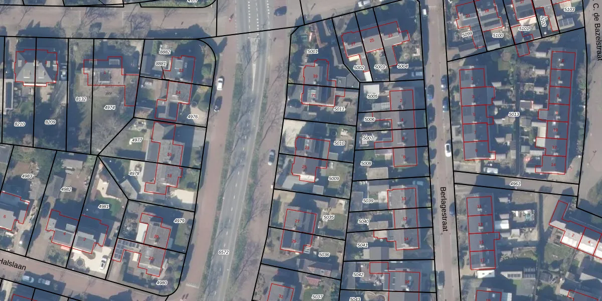 Blaricummerstraat 23 is gelegen op kadastraal perceel HZN00B5010. Deze kadastrale aanduiding is uniek en wordt gebruikt door het Kadaster om eigendomsrechten en andere zakelijke rechten vast te leggen. Het perceel maakt onderdeel uit van de kadastrale gemeente Huizen.