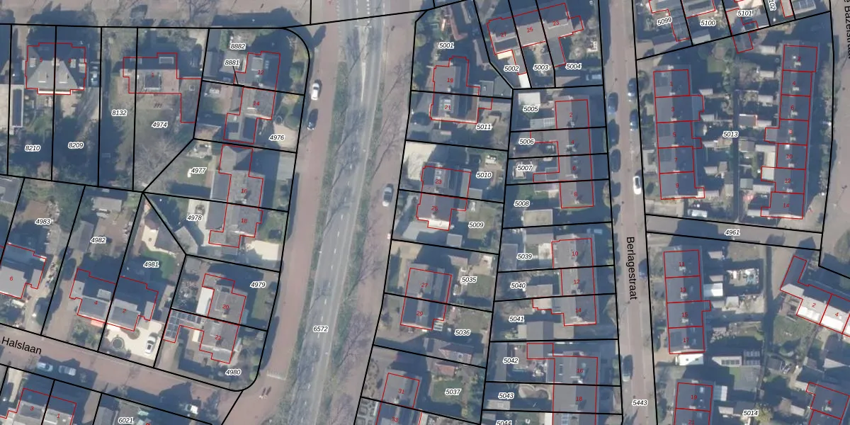 Blaricummerstraat 25 is gelegen op kadastraal perceel HZN00B5009. Deze kadastrale aanduiding is uniek en wordt gebruikt door het Kadaster om eigendomsrechten en andere zakelijke rechten vast te leggen. Het perceel maakt onderdeel uit van de kadastrale gemeente Huizen.