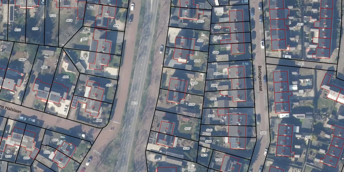 Gebruik de zoekbalk of klik op een perceel voor informatie over de adressen binnen dit perceel.