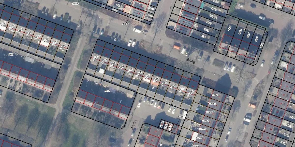 Gebruik de zoekbalk of klik op een perceel voor informatie over de adressen binnen dit perceel.