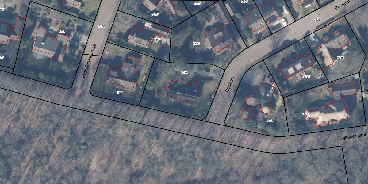 Het perceel waarop Boslaan 12 staat heeft een oppervlakte van 1064 m². Dit is een zeer groot perceel. De perceeloppervlakte wordt geregistreerd door het Kadaster. Gedetailleerde informatie over de maten van dit perceel kunt u vinden in het rapport Kadastrale kaart met maatvoering van Boslaan 12.