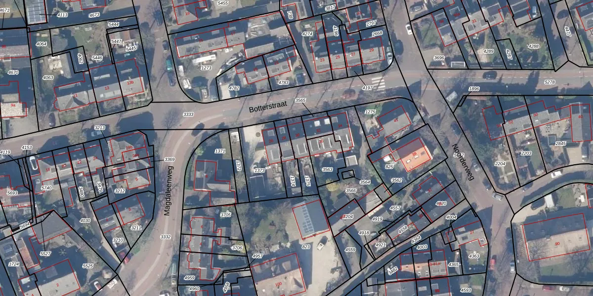 Het perceel waarop Botterstraat 30 staat heeft een oppervlakte van 150 m². Dit is een middelgroot perceel. De perceeloppervlakte wordt geregistreerd door het Kadaster. Gedetailleerde informatie over de maten van dit perceel kunt u vinden in het rapport Kadastrale kaart met maatvoering van Botterstraat 30.