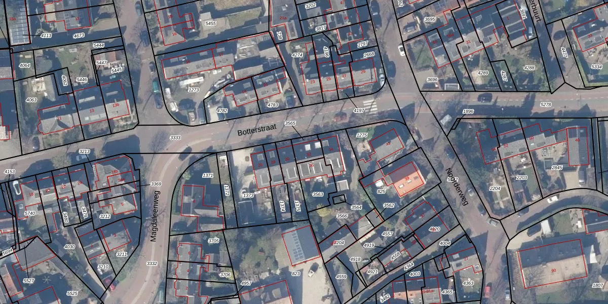 Het perceel waarop Botterstraat 32 staat heeft een oppervlakte van 73 m². Dit is een klein perceel. De perceeloppervlakte wordt geregistreerd door het Kadaster. Gedetailleerde informatie over de maten van dit perceel kunt u vinden in het rapport Kadastrale kaart met maatvoering van Botterstraat 32.