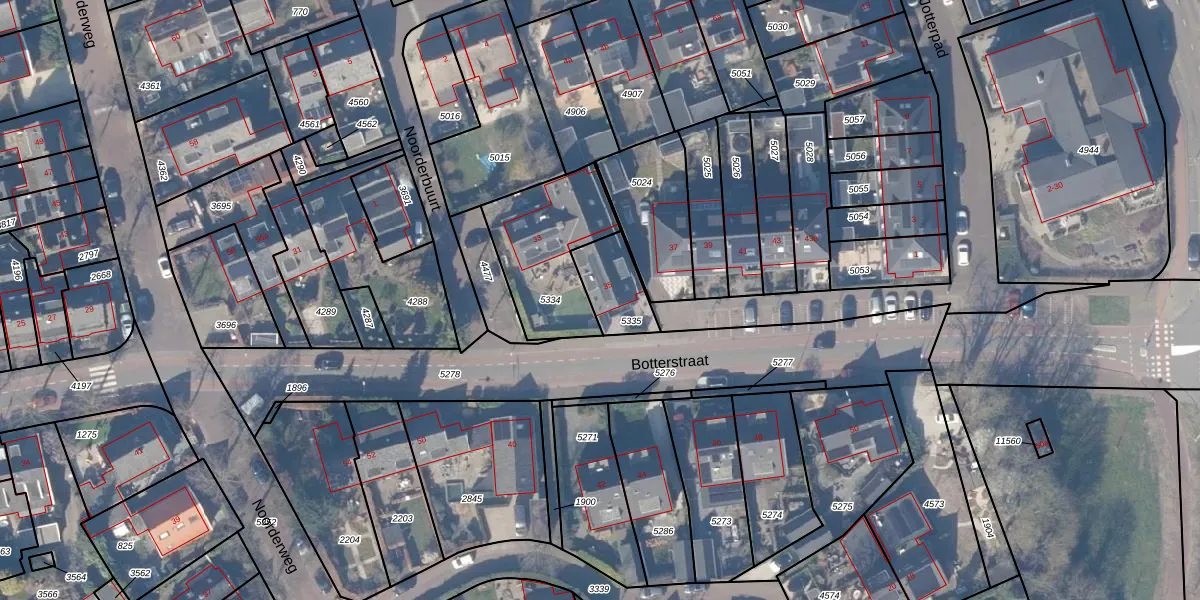 Het perceel waarop Botterstraat 35 staat heeft een oppervlakte van 152 m². Dit is een middelgroot perceel. De perceeloppervlakte wordt geregistreerd door het Kadaster. Gedetailleerde informatie over de maten van dit perceel kunt u vinden in het rapport Kadastrale kaart met maatvoering van Botterstraat 35.