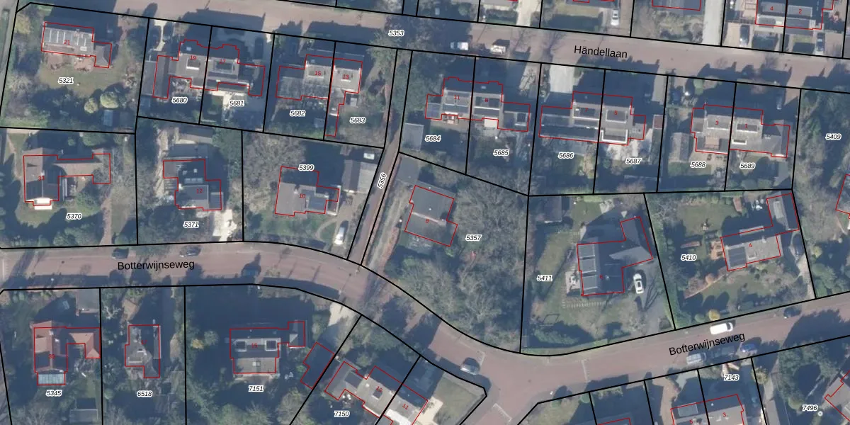 Botterwijnseweg 8 is gelegen op kadastraal perceel HZN00B5357. Deze kadastrale aanduiding is uniek en wordt gebruikt door het Kadaster om eigendomsrechten en andere zakelijke rechten vast te leggen. Het perceel maakt onderdeel uit van de kadastrale gemeente Huizen.