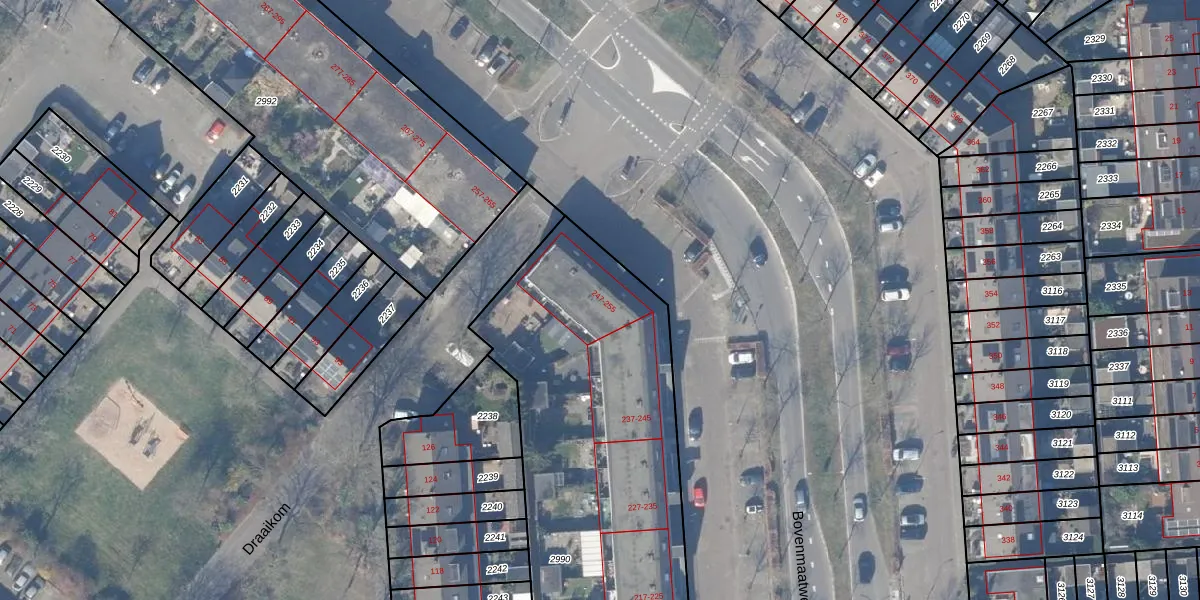 Het perceel waarop Bovenmaatweg 247 staat heeft een oppervlakte van 2286 m². Dit is een zeer groot perceel. De perceeloppervlakte wordt geregistreerd door het Kadaster. Gedetailleerde informatie over de maten van dit perceel kunt u vinden in het rapport Kadastrale kaart met maatvoering van Bovenmaatweg 247.