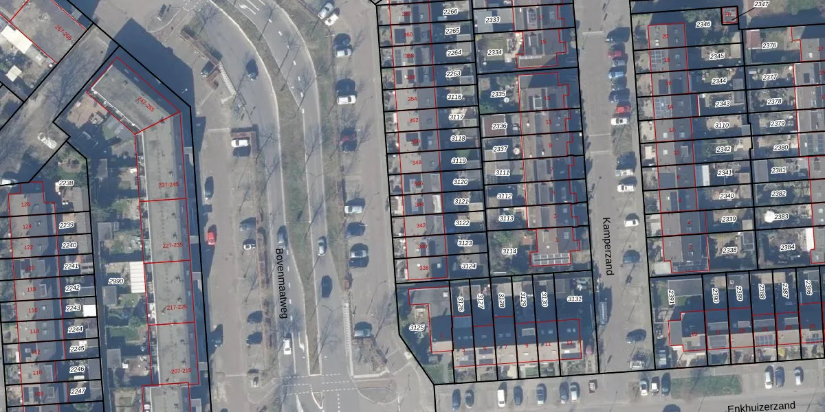 Bovenmaatweg 344 is gelegen op kadastraal perceel HZN00E3121. Deze kadastrale aanduiding is uniek en wordt gebruikt door het Kadaster om eigendomsrechten en andere zakelijke rechten vast te leggen. Het perceel maakt onderdeel uit van de kadastrale gemeente Huizen.