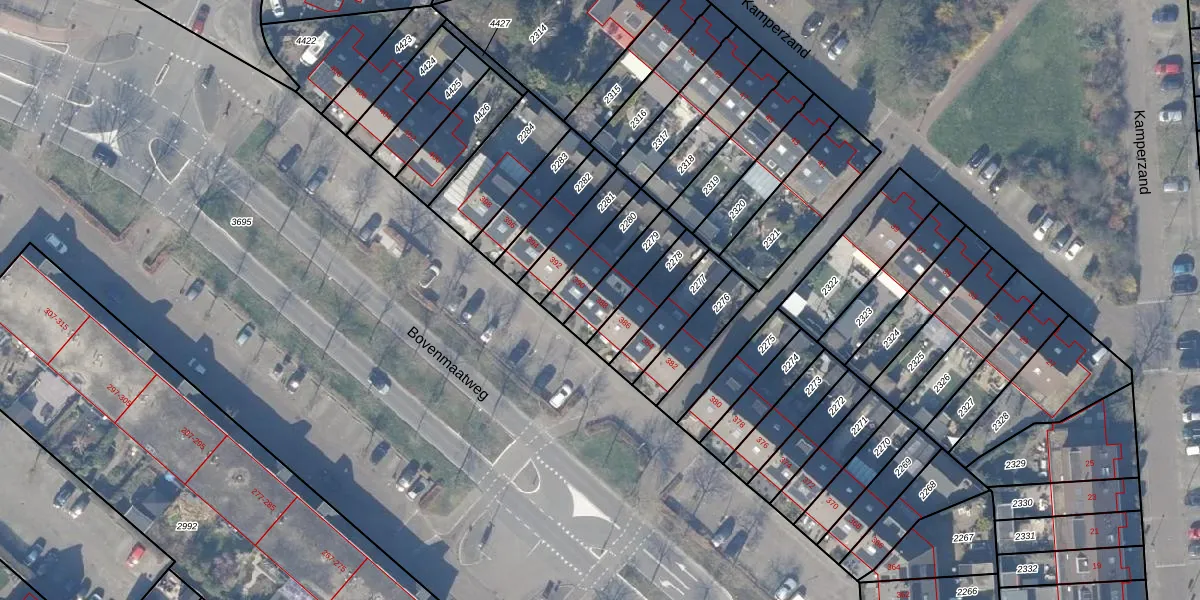 Bovenmaatweg 388 is gelegen op kadastraal perceel HZN00E2279. Deze kadastrale aanduiding is uniek en wordt gebruikt door het Kadaster om eigendomsrechten en andere zakelijke rechten vast te leggen. Het perceel maakt onderdeel uit van de kadastrale gemeente Huizen.