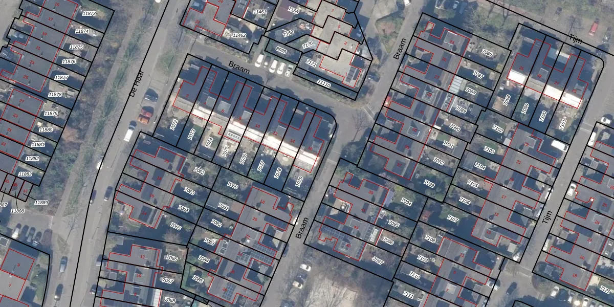 Het perceel waarop Braam 16 staat heeft een oppervlakte van 240 m². Dit is een middelgroot perceel. De perceeloppervlakte wordt geregistreerd door het Kadaster. Gedetailleerde informatie over de maten van dit perceel kunt u vinden in het rapport Kadastrale kaart met maatvoering van Braam 16.