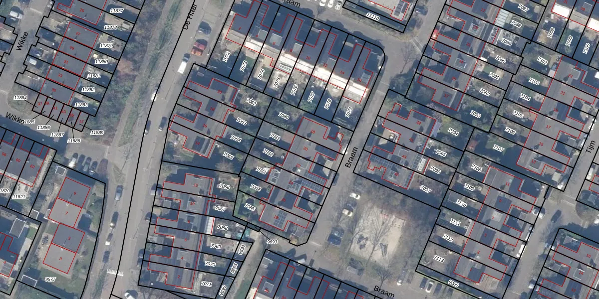 Het perceel waarop Braam 20 staat heeft een oppervlakte van 182 m². Dit is een middelgroot perceel. De perceeloppervlakte wordt geregistreerd door het Kadaster. Gedetailleerde informatie over de maten van dit perceel kunt u vinden in het rapport Kadastrale kaart met maatvoering van Braam 20.