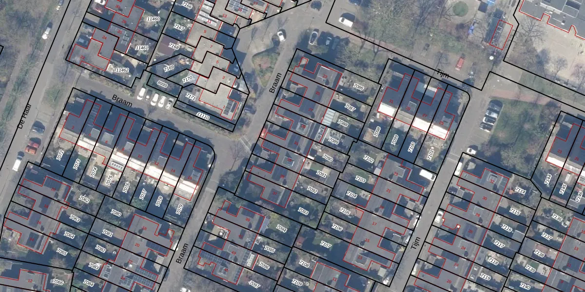 Het perceel waarop Braam 31 staat heeft een oppervlakte van 194 m². Dit is een middelgroot perceel. De perceeloppervlakte wordt geregistreerd door het Kadaster. Gedetailleerde informatie over de maten van dit perceel kunt u vinden in het rapport Kadastrale kaart met maatvoering van Braam 31.