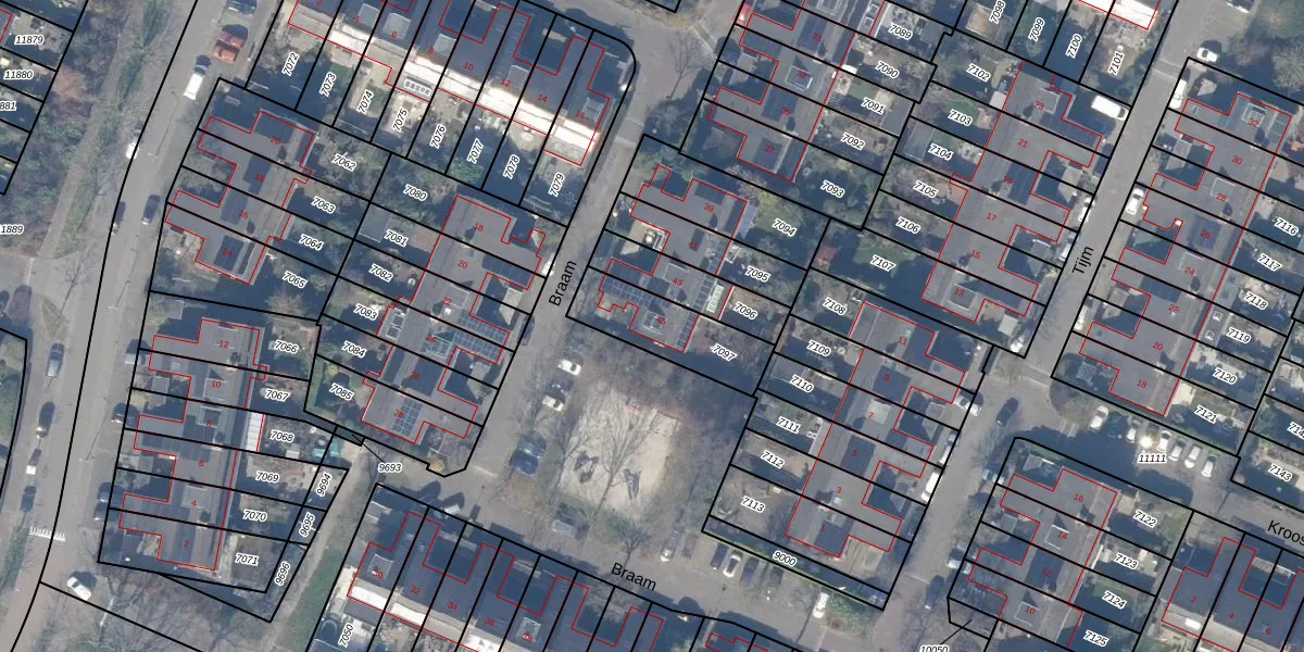Het perceel waarop Braam 45 staat heeft een oppervlakte van 261 m². Dit is een middelgroot perceel. De perceeloppervlakte wordt geregistreerd door het Kadaster. Gedetailleerde informatie over de maten van dit perceel kunt u vinden in het rapport Kadastrale kaart met maatvoering van Braam 45.