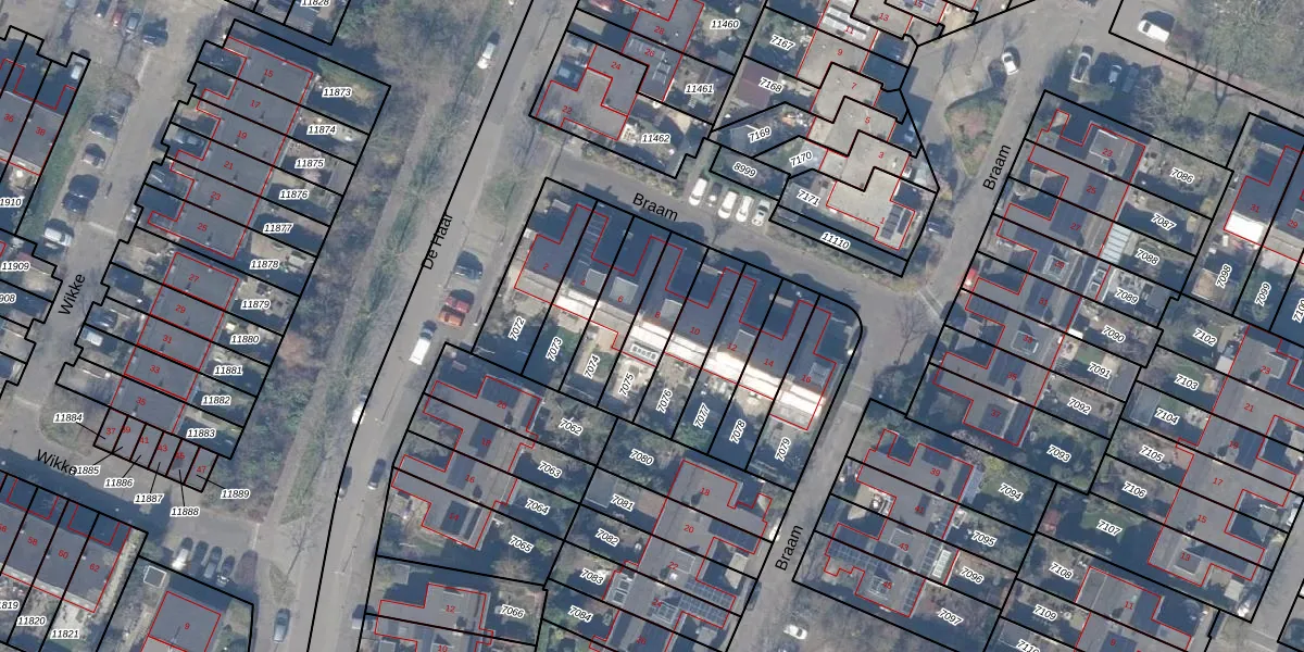 Gebruik de zoekbalk of klik op een perceel voor informatie over de adressen binnen dit perceel.