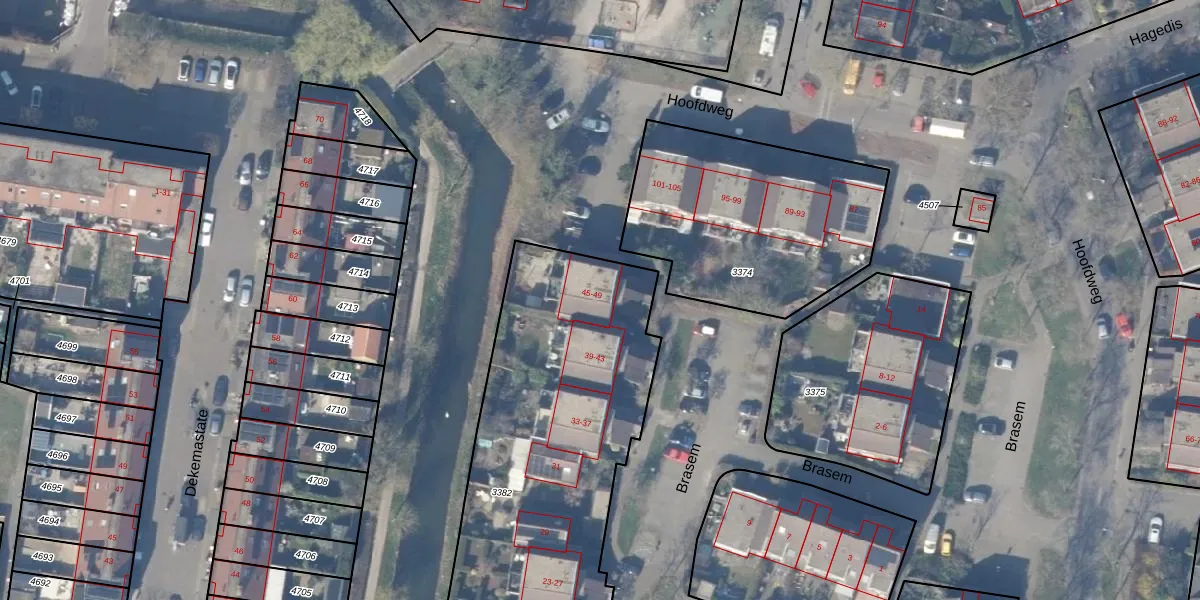 Het perceel waarop Brasem 45 staat heeft een oppervlakte van 2080 m². Dit is een zeer groot perceel. De perceeloppervlakte wordt geregistreerd door het Kadaster. Gedetailleerde informatie over de maten van dit perceel kunt u vinden in het rapport Kadastrale kaart met maatvoering van Brasem 45.
