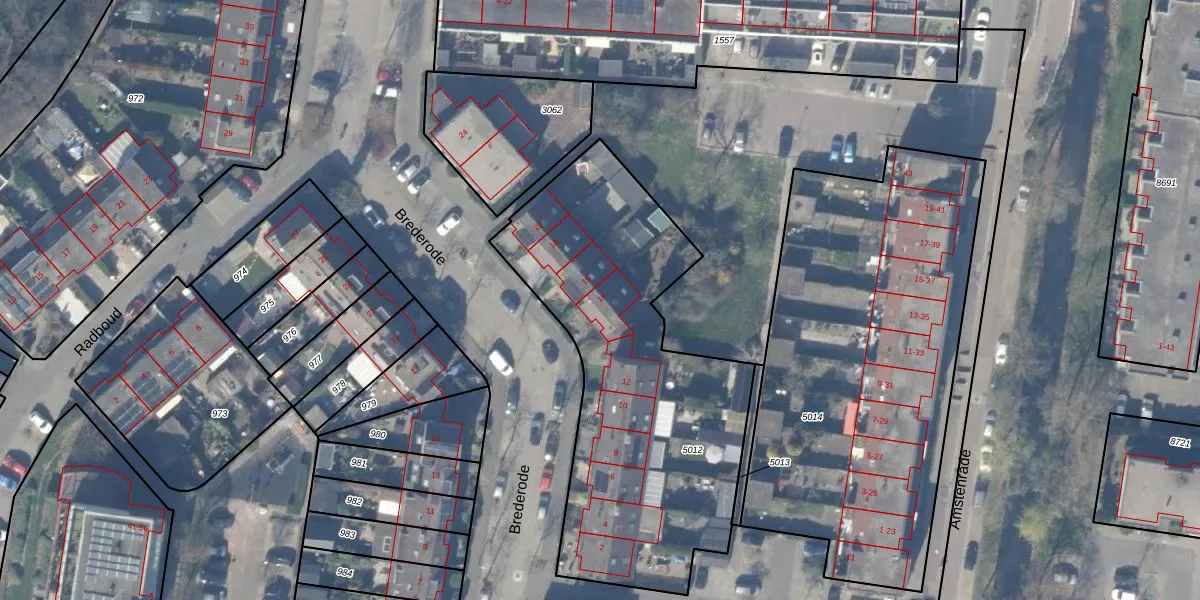 Brederode 14 is gelegen op kadastraal perceel HZN00E5012. Deze kadastrale aanduiding is uniek en wordt gebruikt door het Kadaster om eigendomsrechten en andere zakelijke rechten vast te leggen. Het perceel maakt onderdeel uit van de kadastrale gemeente Huizen.